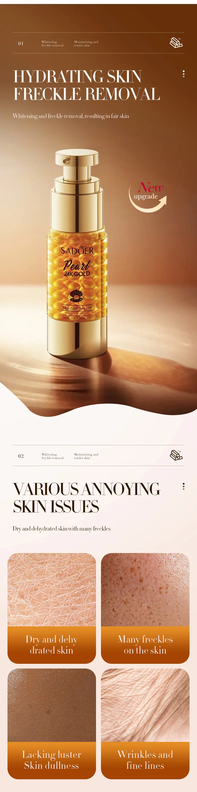24K Golden Pearl Collagen Whitening and Moisturizing Face Essence Face Cream Gold Lotion and 24K Eye Cream freckle removal